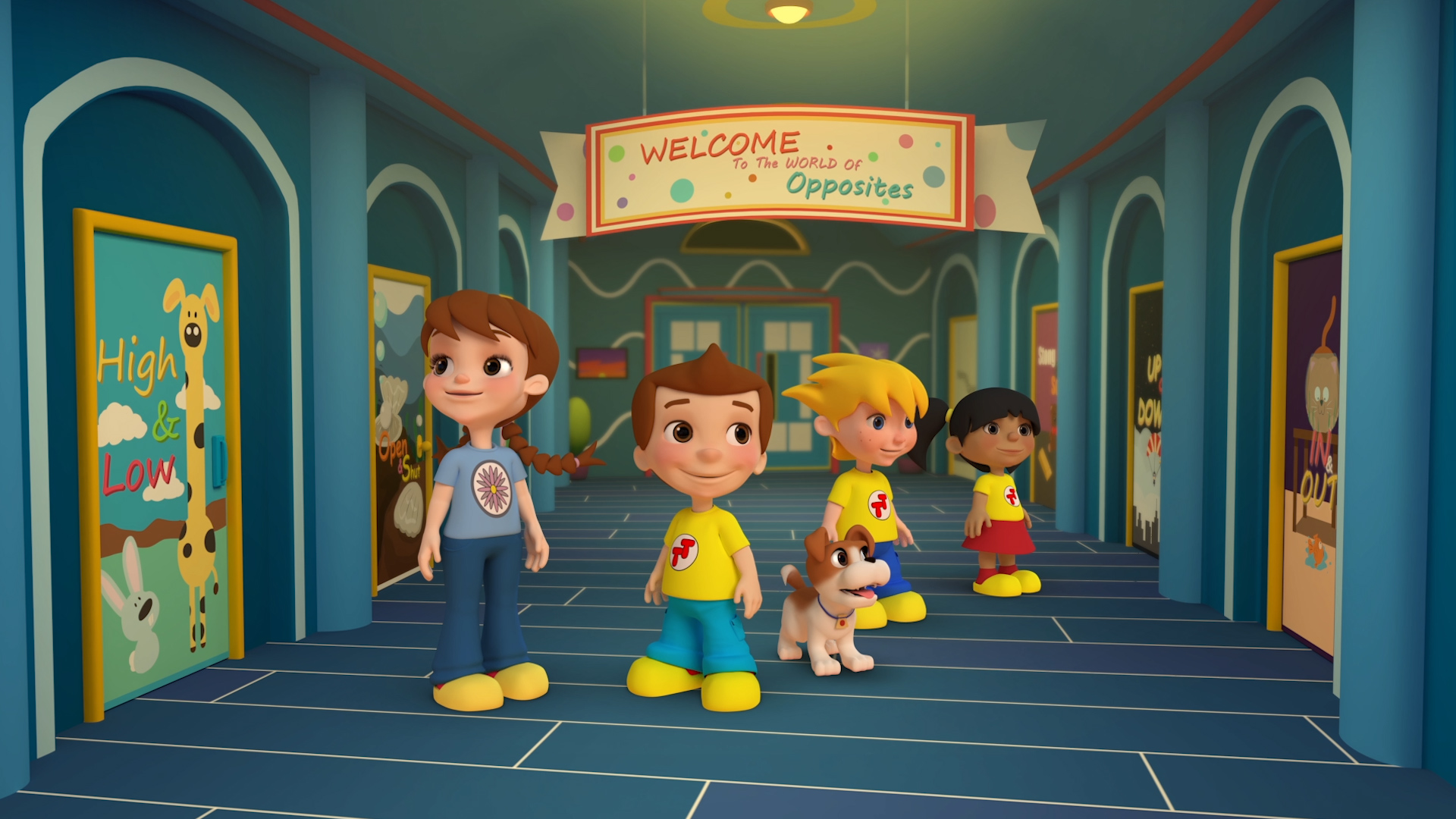 Leesey is teaching the children a rhyme about opposites and when they are transported into their imaginary world they go to the World Of Opposites.